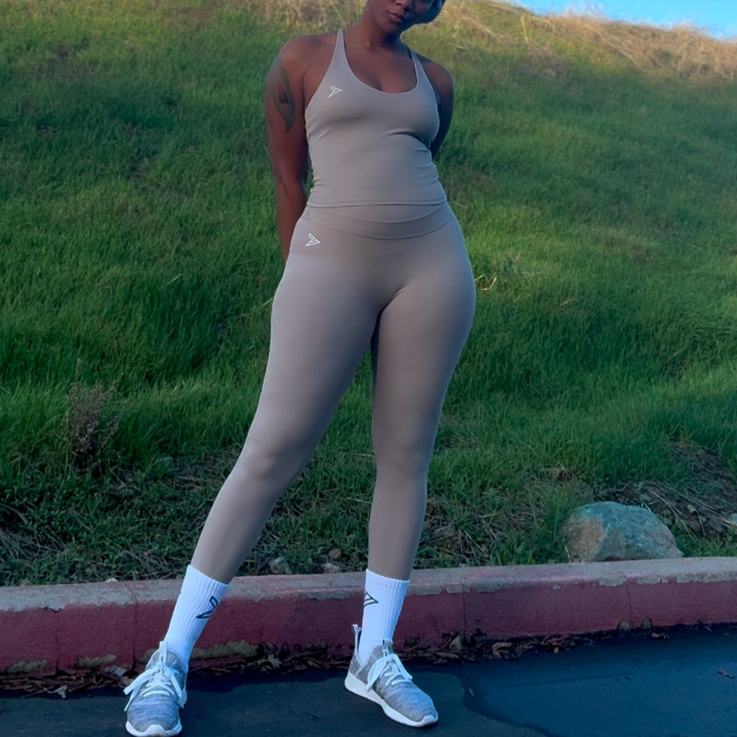 Introducing the Gaia Balance Leggings. Made from soft and buttery material, these leggings provide tummy control with a double seam waist and define the butt with a v-back double seam. Perfect for everyday wear, yoga or gym, these leggings combine style and functionality for the modern woman.