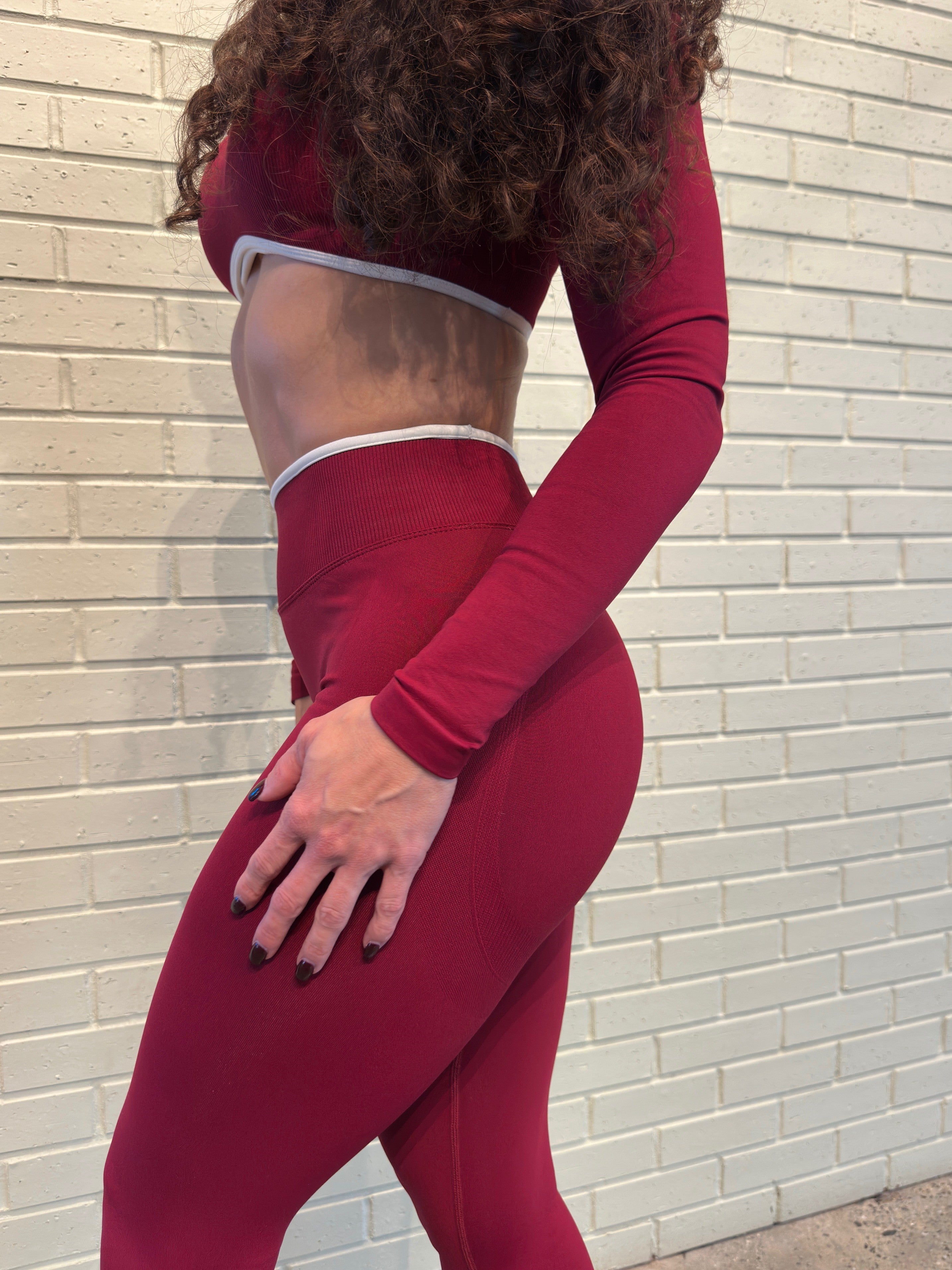 Model in Crimson wearing Small.