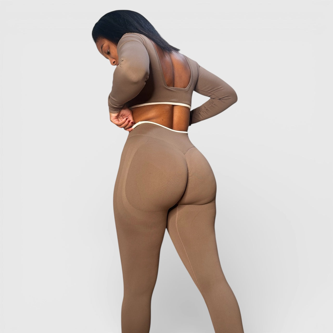 Elevate your activewear with the Athena Pulse Leggings, designed to enhance your natural curves with precision. These sophisticated leggings feature a sculpted butt print that lifts and defines while providing a flattering silhouette for your hips and posterior. The refined white trim at the waistline adds an elegant touch, creating a polished look that transitions seamlessly from gym to everyday wear. Experience the perfect balance of style and support.